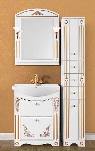 Тумба под раковину Кармен 65 с ящиками, белая/золото