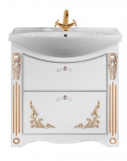 Водолей Тумба с раковиной "Кармен 75" 2 ящика, белая/золото