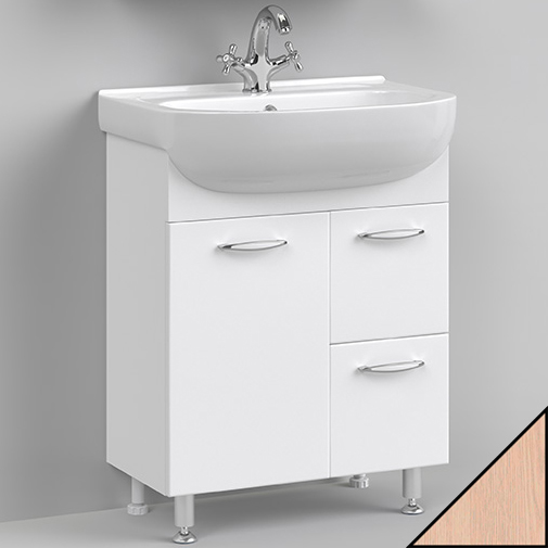 Комплектация: Тумба с раковиной, раковина Стиль 65, регулируемые по высоте ножки.
