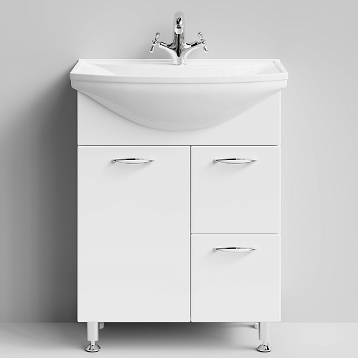 Комплектация: Тумба с раковиной, раковина Стиль 65, регулируемые по высоте ножки.