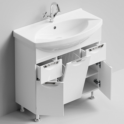 Водолей Тумба с раковиной Лира 85 с б/к белая