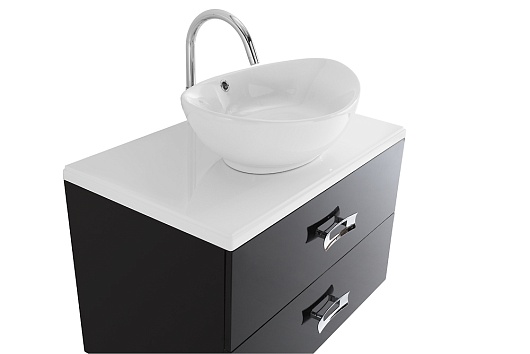 - Тумба с раковиной Мэдисон 80: раковина Гамма 56 см, тумба со столешницей (композитный материал) под накладную раковину, ручки из металла, петли и ящики с доводчиками.