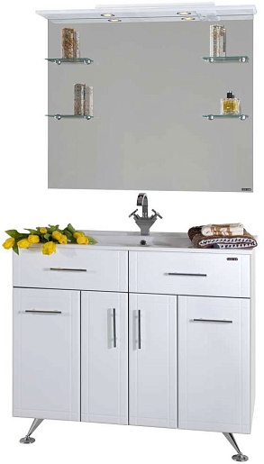 Комплектация: Тумба с раковиной, умывальник Ницца 100, регулируемые по высоте ножки.