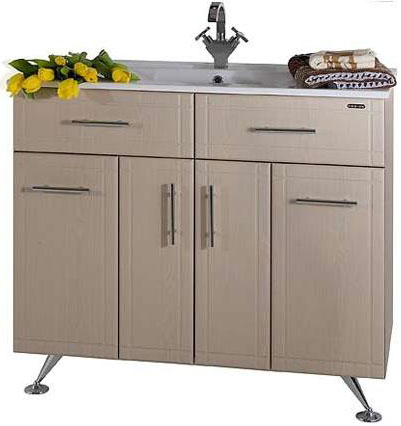 Комплектация: Тумба с раковиной, умывальник Ницца 100, регулируемые по высоте ножки, бельевая корзина.