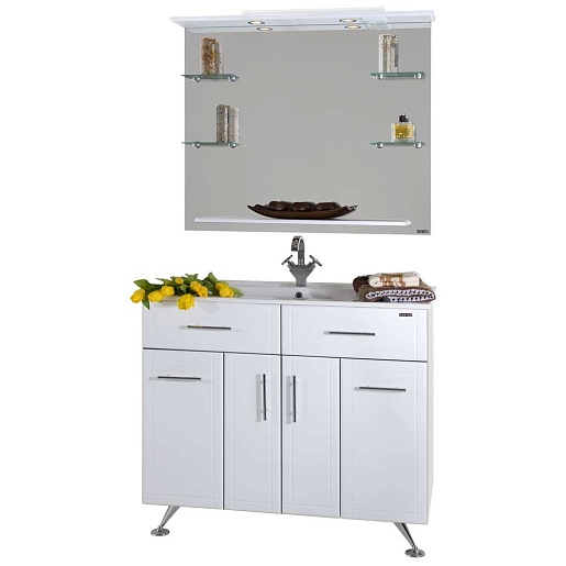 Комплектация: Тумба с раковиной, умывальник Ницца 100, регулируемые по высоте ножки, бельевая корзина.