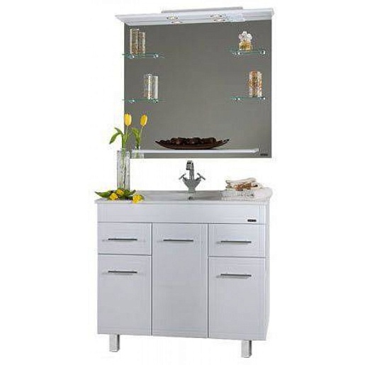 Комплектация: Тумба с раковиной, умывальник Elen 90, регулируемые по высоте ножки, бельевая корзина.