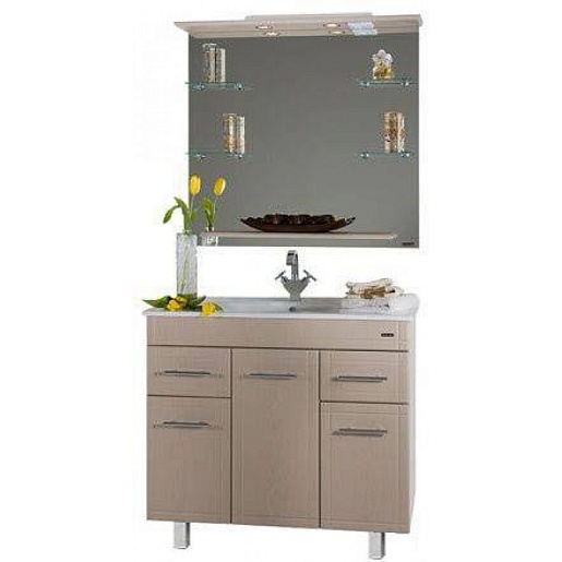 Комплектация: Тумба с раковиной, умывальник Elen 90, регулируемые по высоте ножки, бельевая корзина.