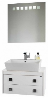 Комплектация: Тумба с раковиной, столешница из акрилового камня, накладной умывальник Гамма 56 см.