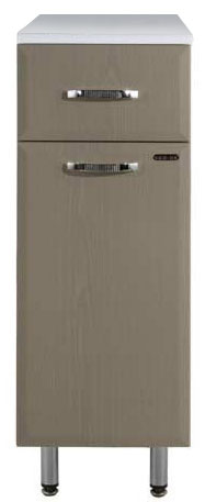 Описание: напольная тумба с ножками, выдвижным ящиком и распашным отделением с корзиной для белья.