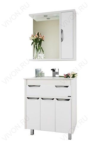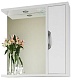 Комплектация: влагостойкая зеркальная панель с полочкой, шкафчик с распашной дверцей, подсветка с автономным выключателем, розетка для фена или бритвы.