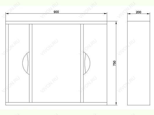 Комплектация: влагостойкая зеркальная панель с открытой полочкой, два боковых шкафчик с распашными дверцами, галогеновый светильник, розетка для фена или бритвы.