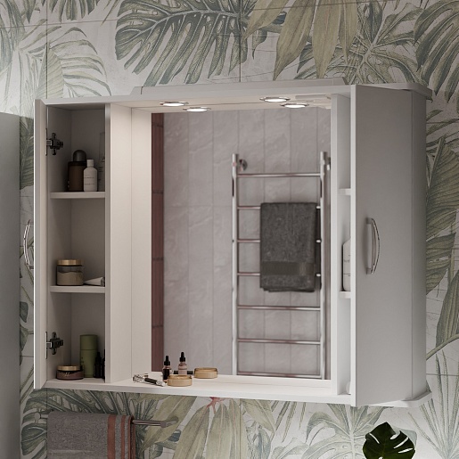 Комплектация: Шкаф оборудован трансформатором мощностью 60 Вт для подключения галогенных светильников со скрытым подключением электропровода, выключателем и розеткой.