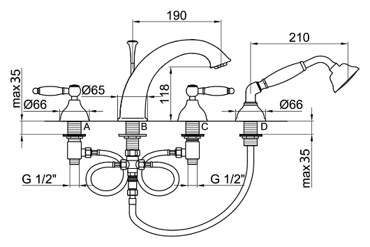 Webert Смеситель Alexandra AL730101010 золото, на борт ванны