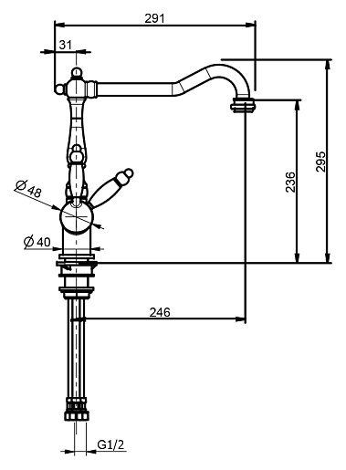- поворотный излив длиной 24.5 см