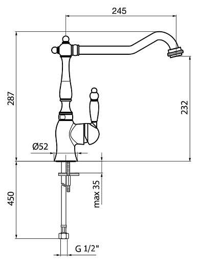 - поворотный излив длиной 24.5 см