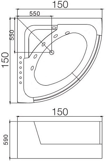 Комплектация: ванна с гидромассажем, каркас, подголовник, смеситель, душевая лейка, слив-перелив.
