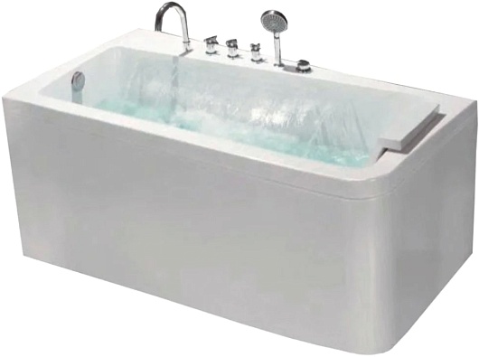 Комплектация: ванна с гидромассажем, каркас, подголовник, смеситель, душевая лейка, слив-перелив.
