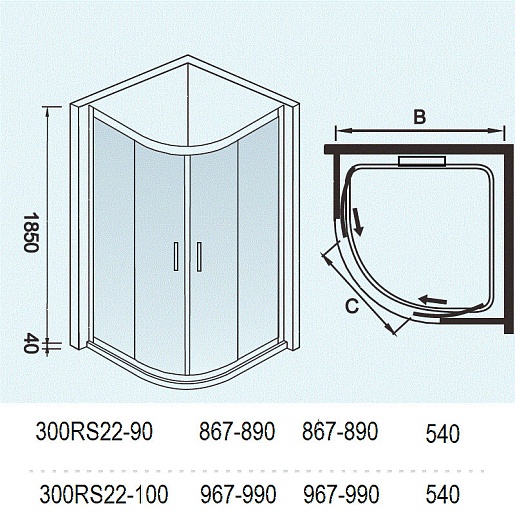 WeltWasser Душевое ограждение WW300 300RS22-90