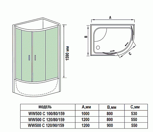WeltWasser Душевой уголок WW500 С 120/90/159