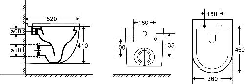 - Межосевое расстояние под крепеж унитаза: 18, 23 см.
