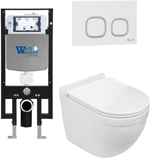 WeltWasser Унитаз подвесной Heimbach 004 GL-WT в комплекте с инсталляцией Amberg 497 с белой клавишей смыва