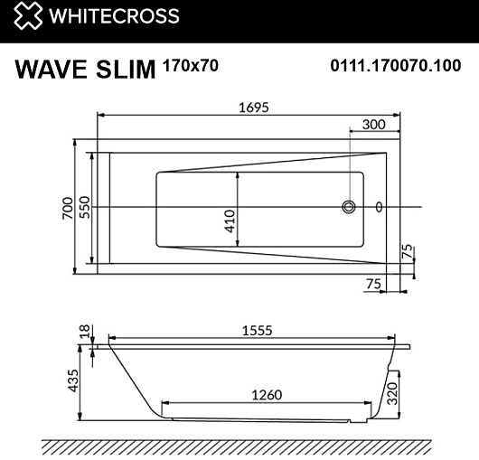 WhiteCross Акриловая ванна Wave Slim 170x70