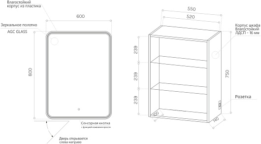 - Led-подсветка с сенсорным выключателем.