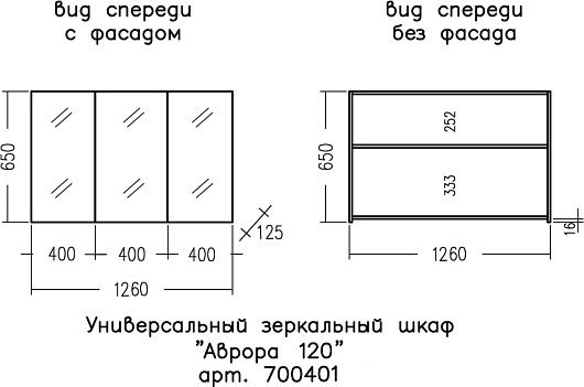 - Размер (ШxВxГ): 1260x650x125 мм.