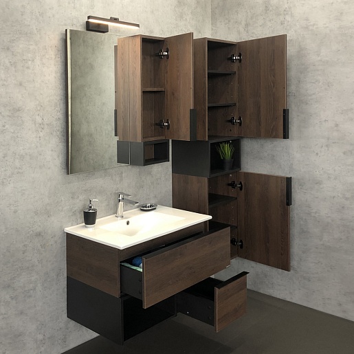 Comforty Зеркальный шкаф Франкфурт 75 дуб шоколадно-коричневый/черный