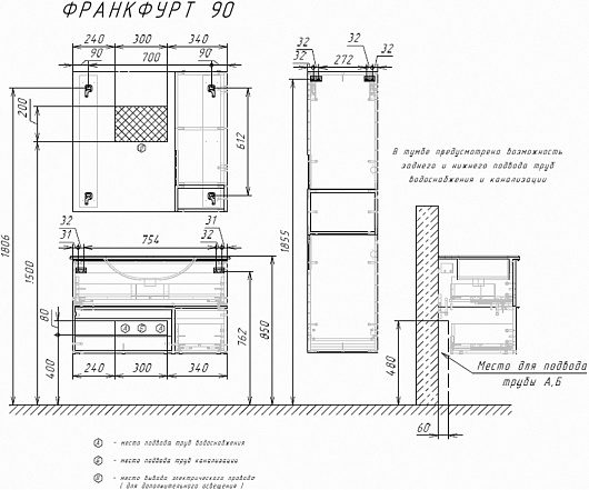 - Материал корпуса/фасада: ЛДСП / ЛДСП, зеркало.