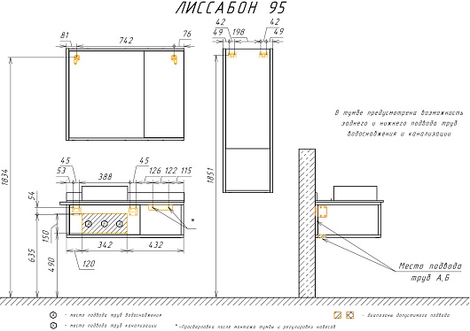 - Материал корпуса/фасада: ЛДСП, металл / ЛДСП, зеркало.