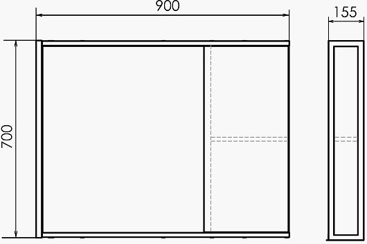 - Размер (ШxВxГ): 900x700x155 мм.