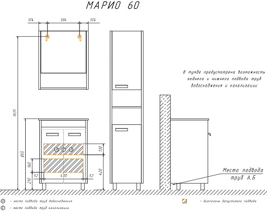 - Материал корпуса/фасада: ЛДСП / ЛДСП, зеркало.