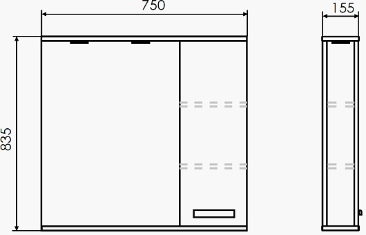 - Размер (ШxВxГ): 750x835x155 мм.