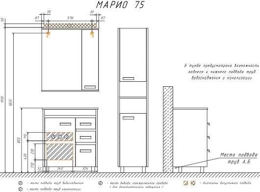 - Материал корпуса/фасада: ЛДСП / ЛДСП, зеркало.