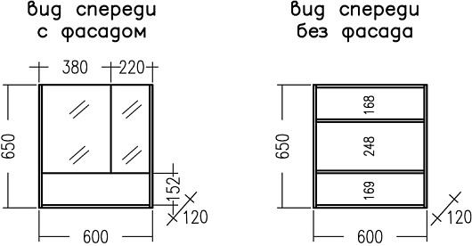 - Размер (ШxВxГ): 600x650x120 мм.