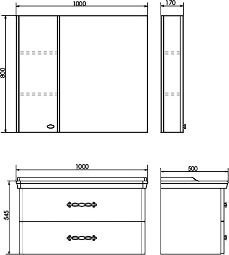 - Размер (ШxВxГ): 1000x800x170 мм.