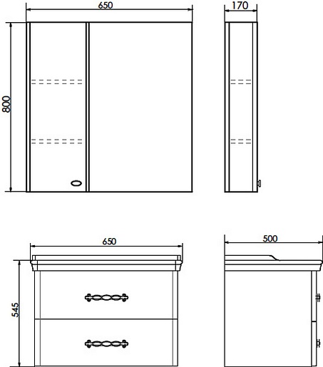 - Материал корпуса/фасада: ЛДСП / МДФ, зеркало.