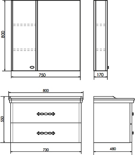 - Материал корпуса/фасада: ЛДСП / МДФ, зеркало.