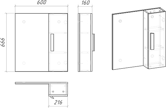 - Размер (ШxВxГ): 600x666x160 мм.