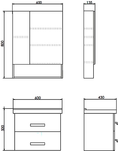 - Материал корпуса/фасада: ЛДСП / ЛДСП, зеркало.