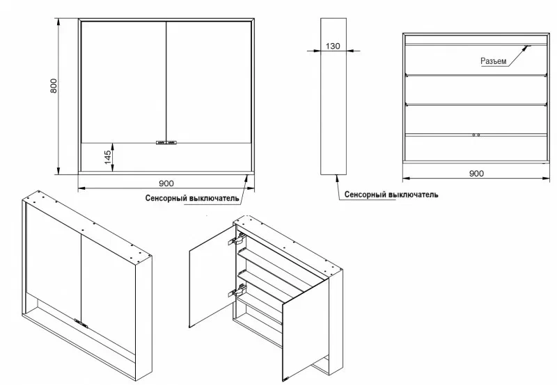 - Две зеркальные дверцы.