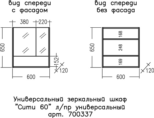 - Размер (ШxВxГ): 600x650x120 мм.