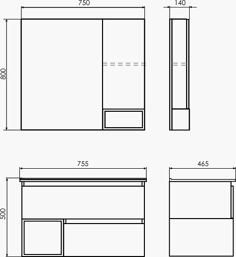 - Размер (ШxВxГ): 750x800x140 мм.