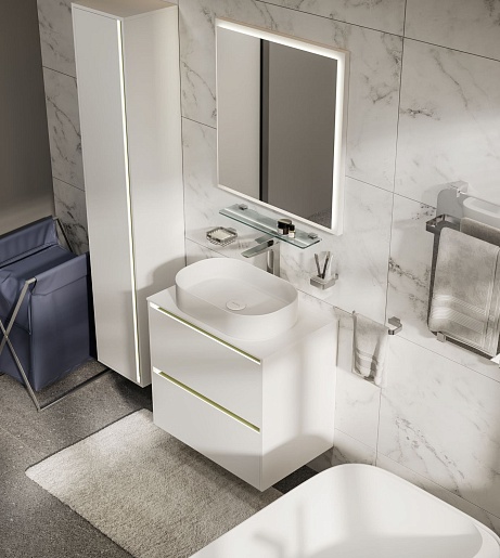 - Теплый тон светодиодной подсветки (3000K) создает комфортную атмосферу в ванной комнате и способствует расслаблению.