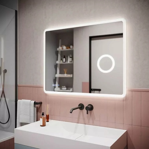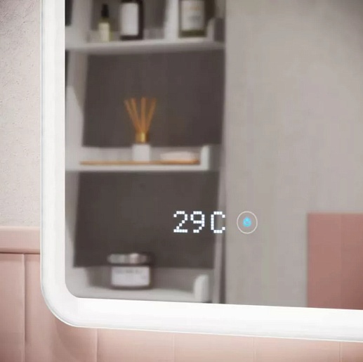 - Дополнительное оснащение зеркала: регулируемая подсветка / датчик температуры воздуха / подвесы.