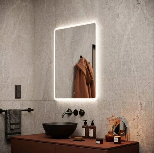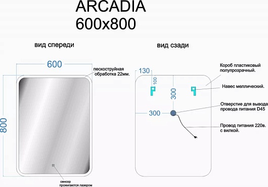- Дополнительное оснащение зеркала: регулируемая подсветка / подвесы.