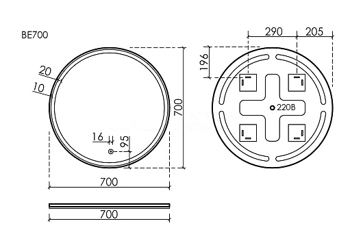 - Дополнительное оснащение зеркала: регулируемая подсветка / подвесы.