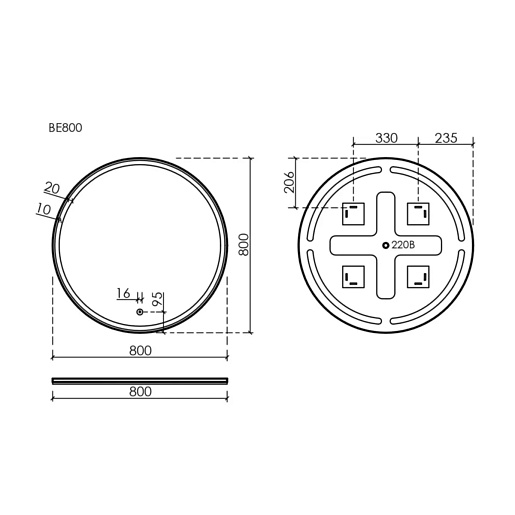 - Дополнительное оснащение зеркала: регулируемая подсветка / подвесы.