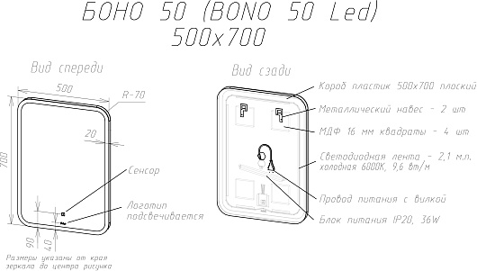 - Размер (ШxВxГ): 700x1000x25 мм.